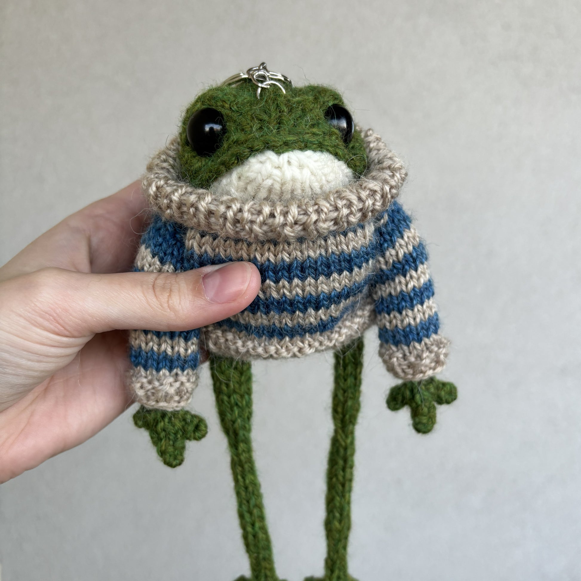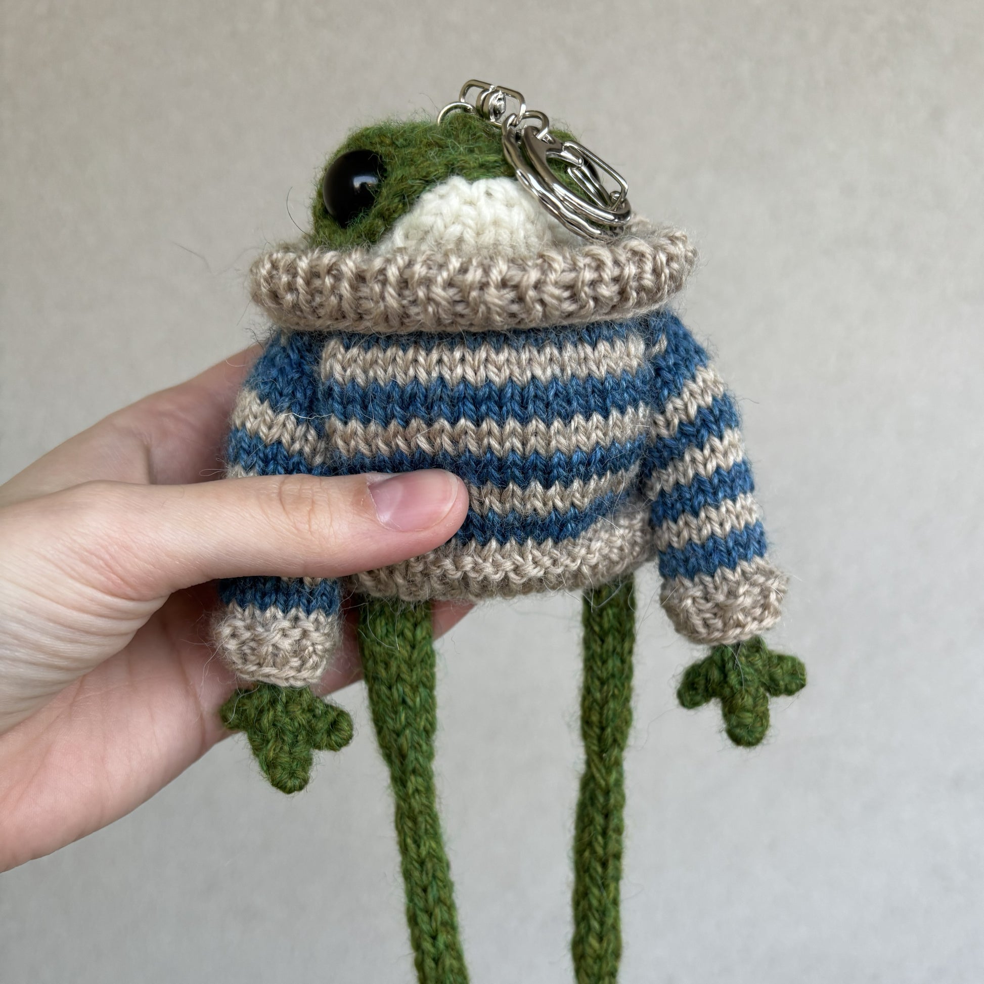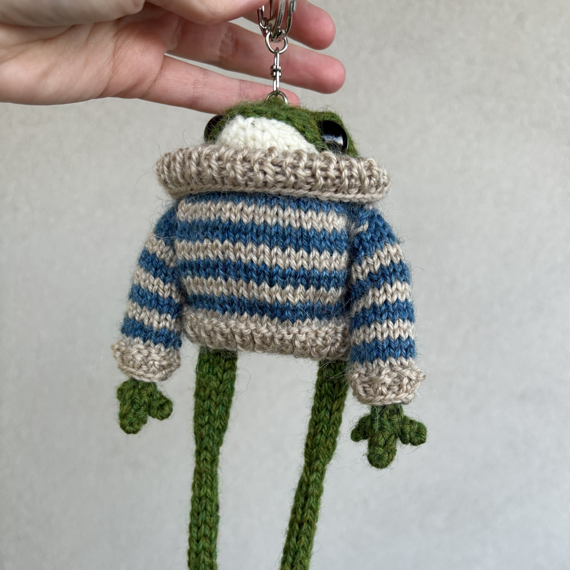 Breloczek Żabka w swetrze beżowo-błękitnym