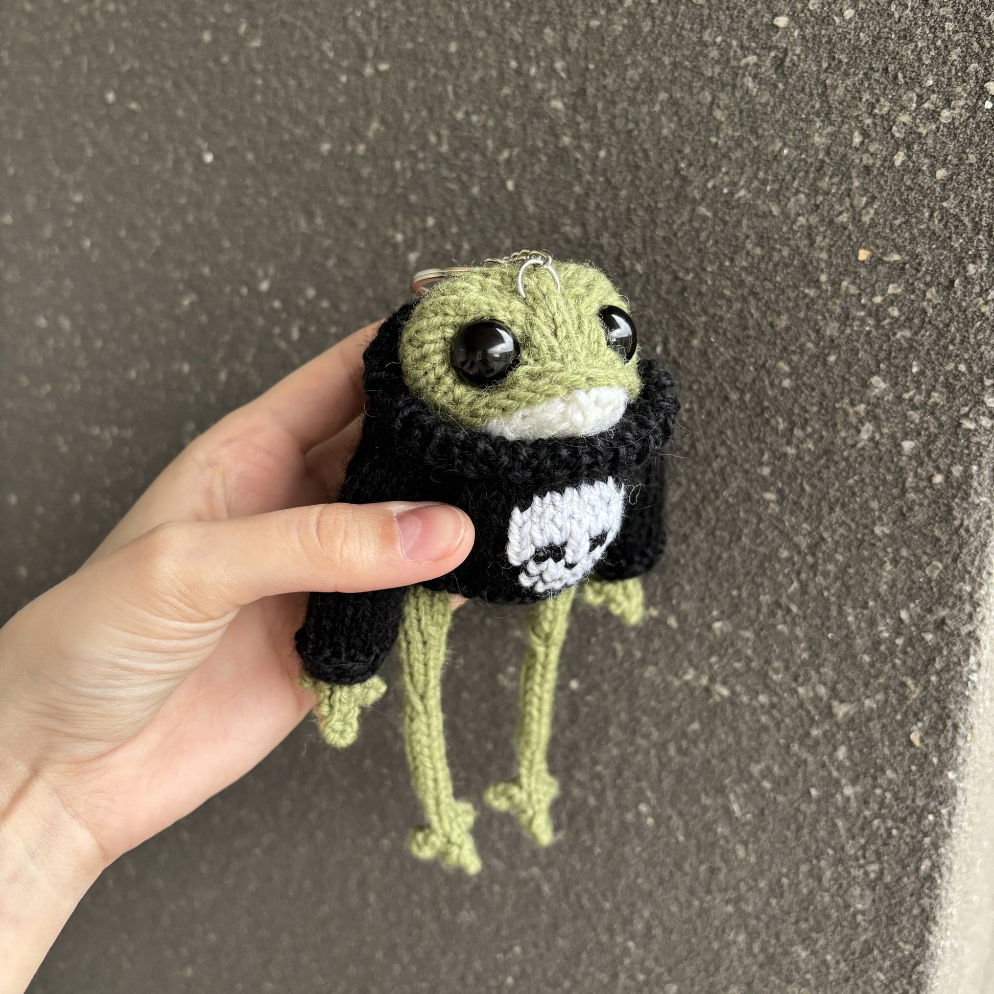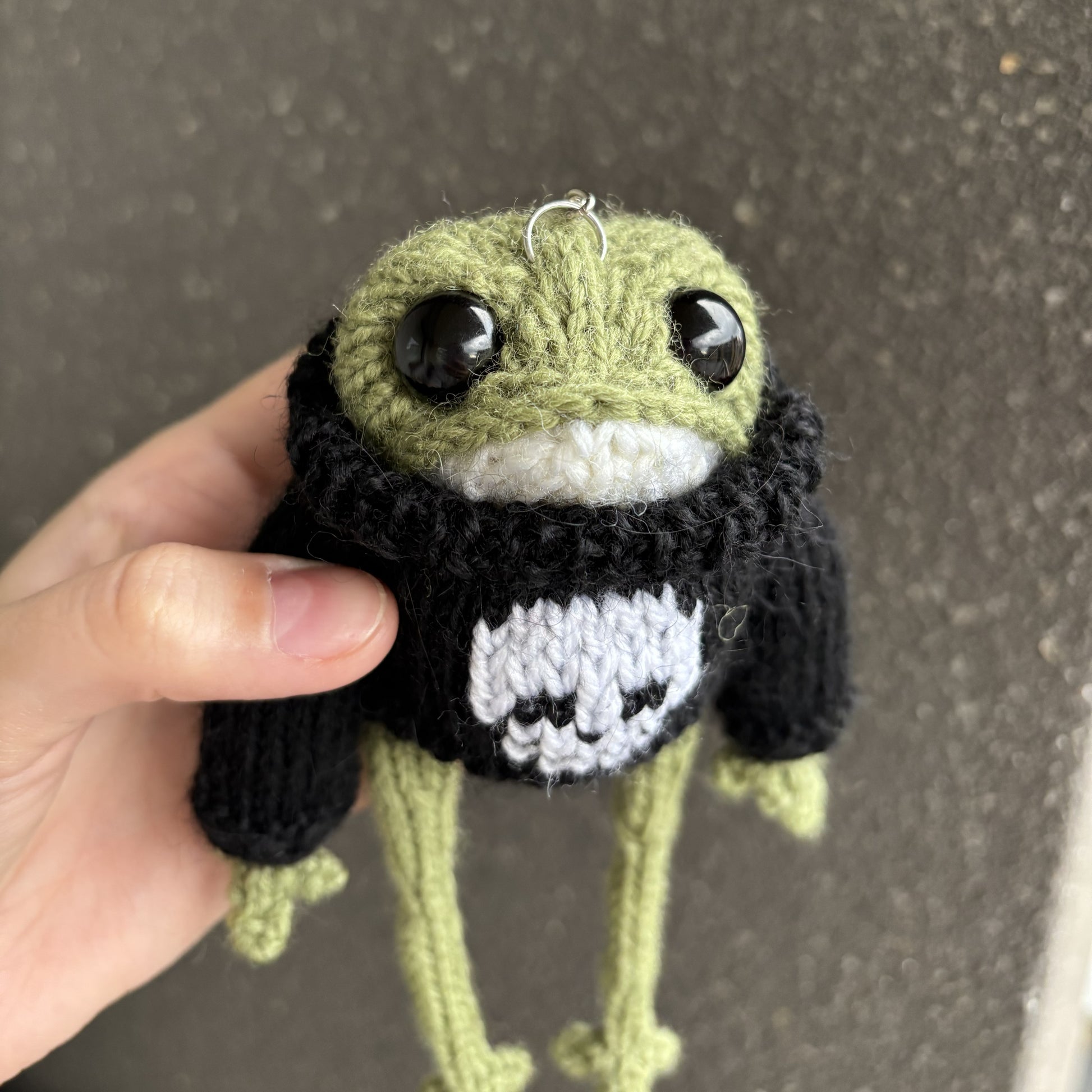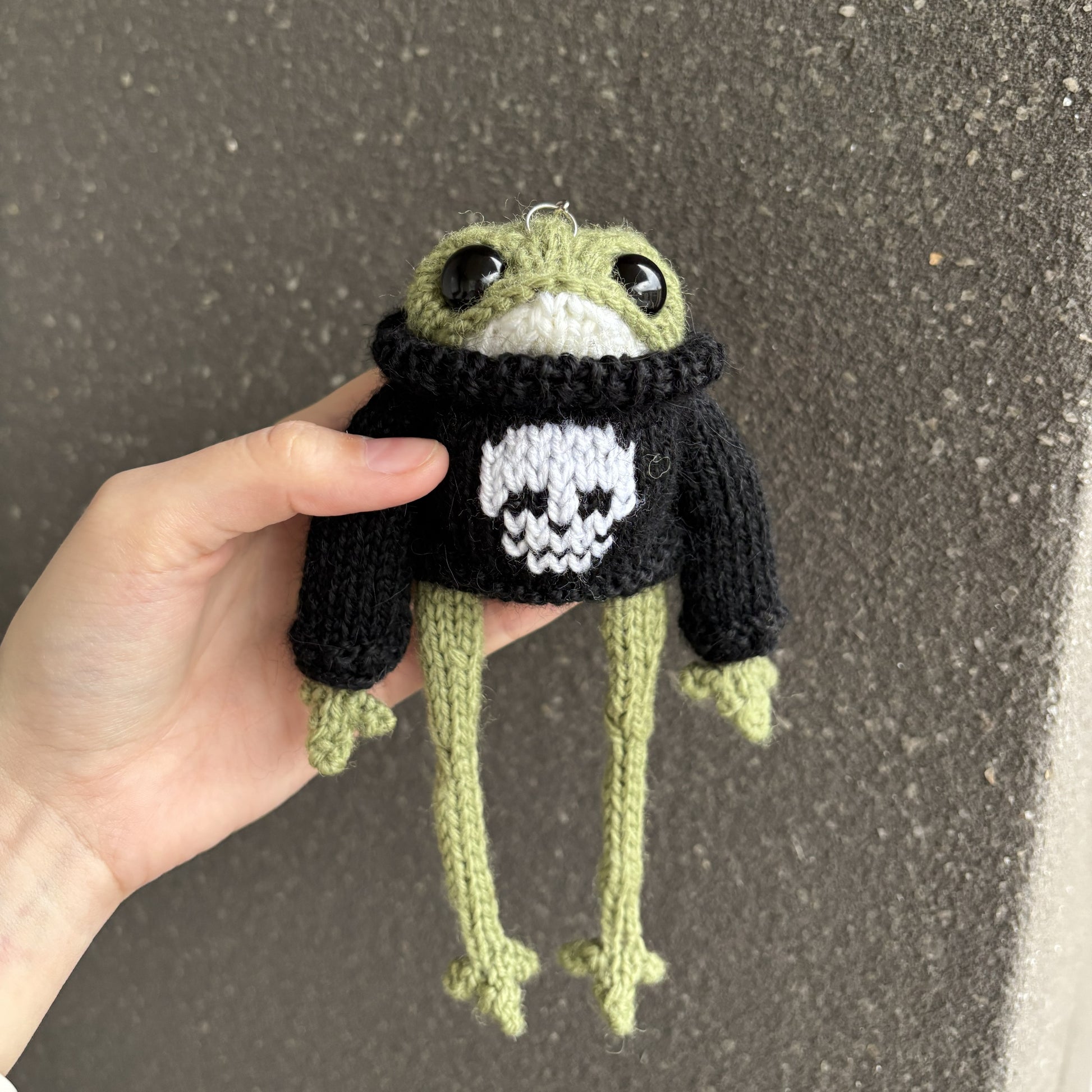 Maskotka wykonana ręcznie na drutach. Ręce i nogi można ustawić w dowolny sposób (w środku drut aluminiowy). Sweter zdejmowany.