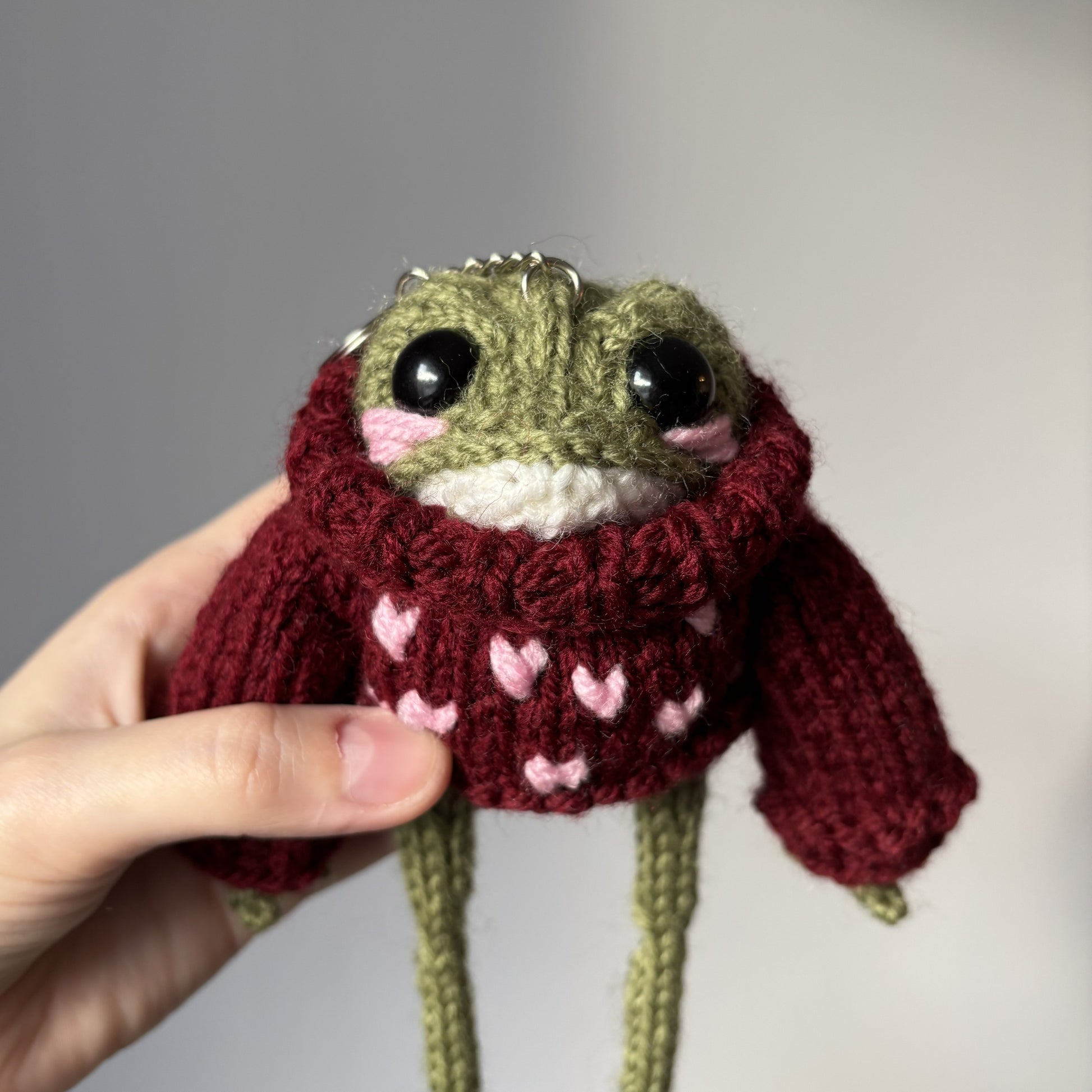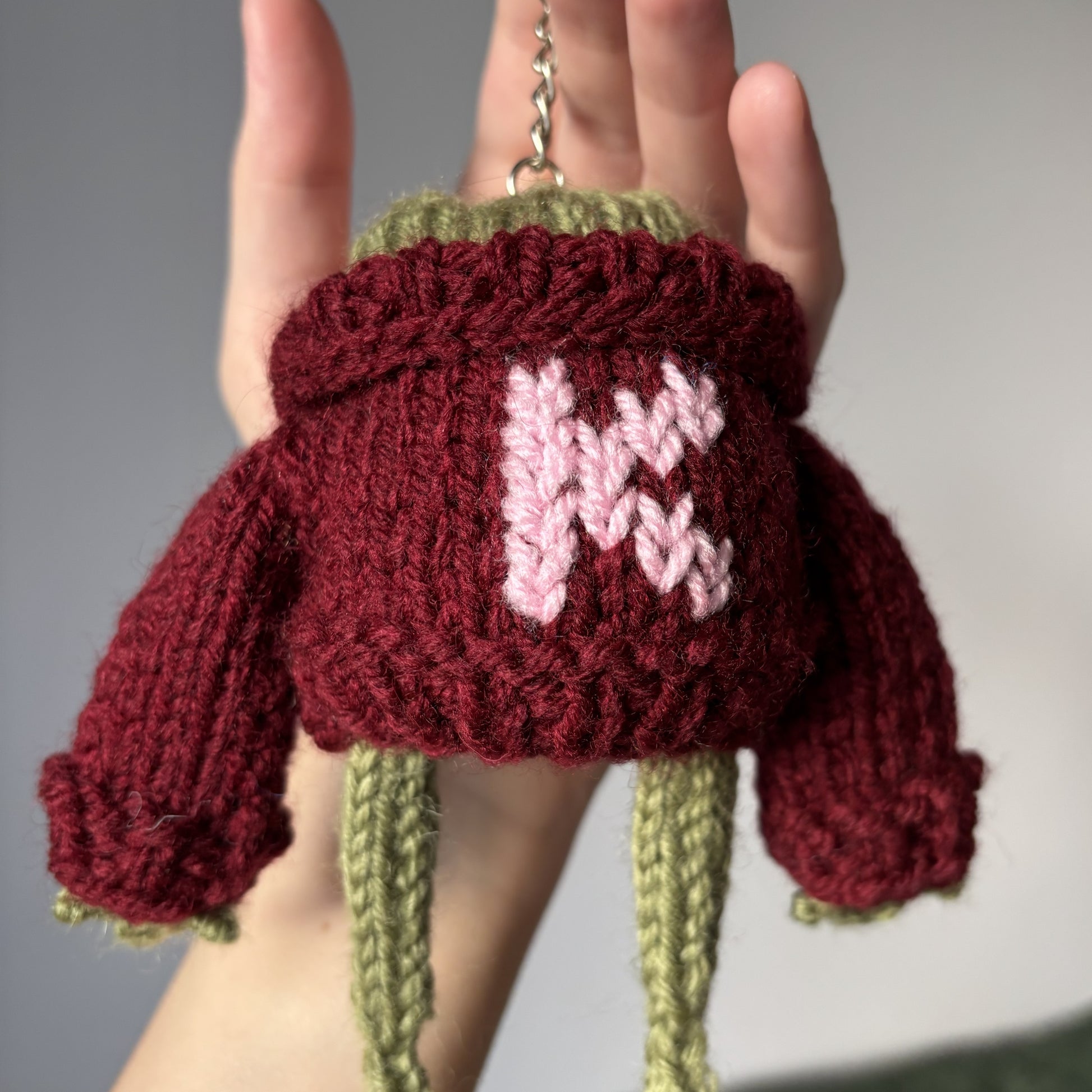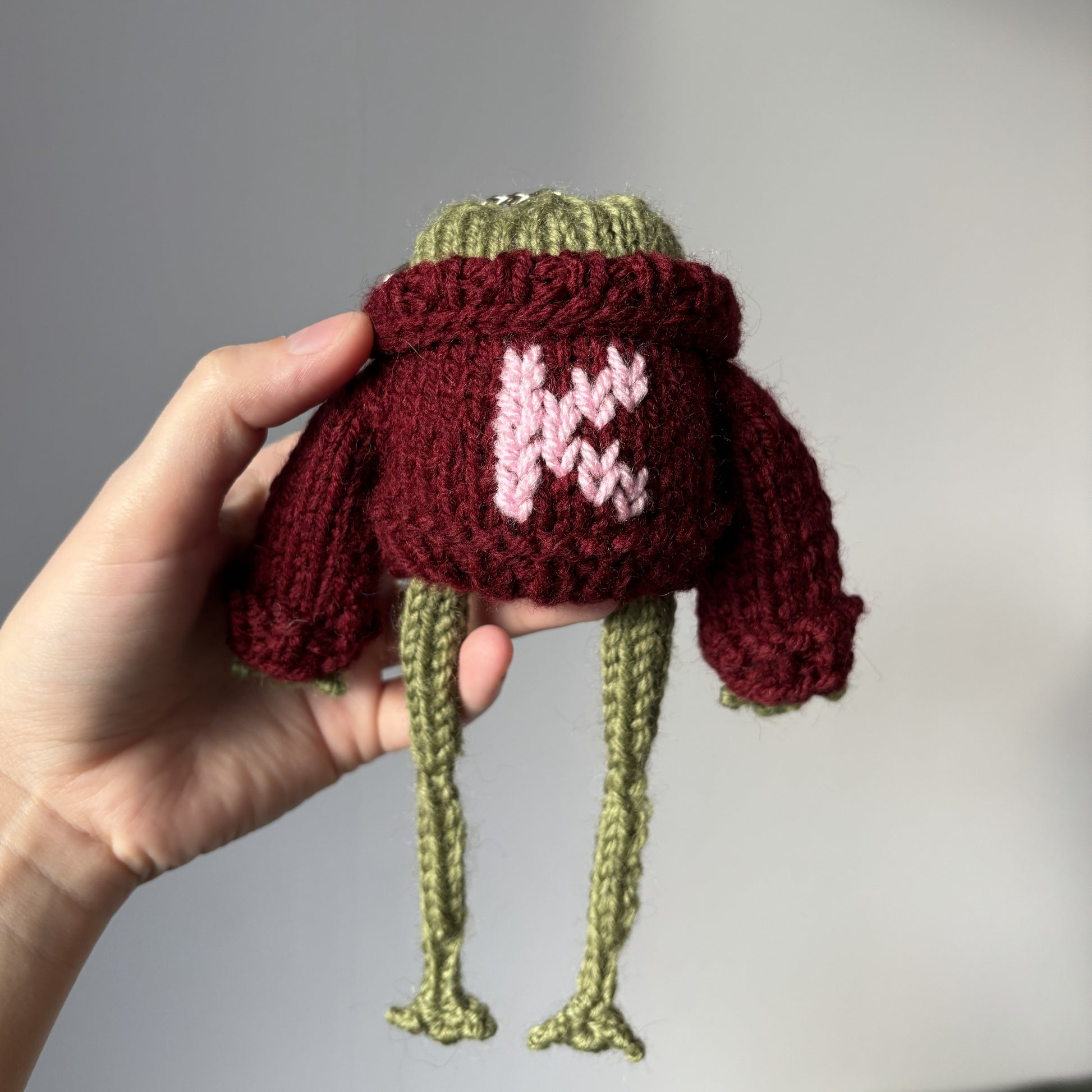 Breloczek Żabubu w bordowym swetrze z inicjałami