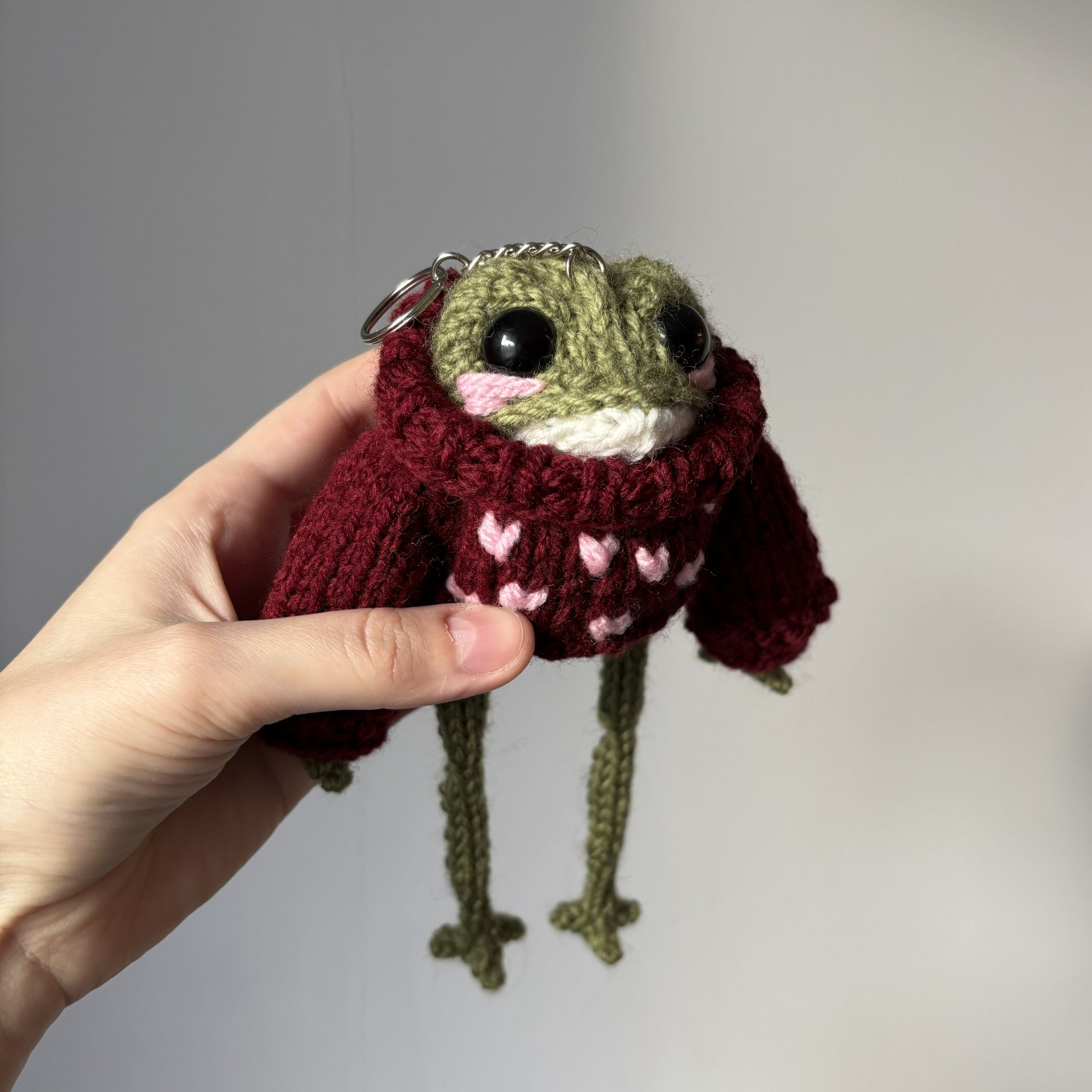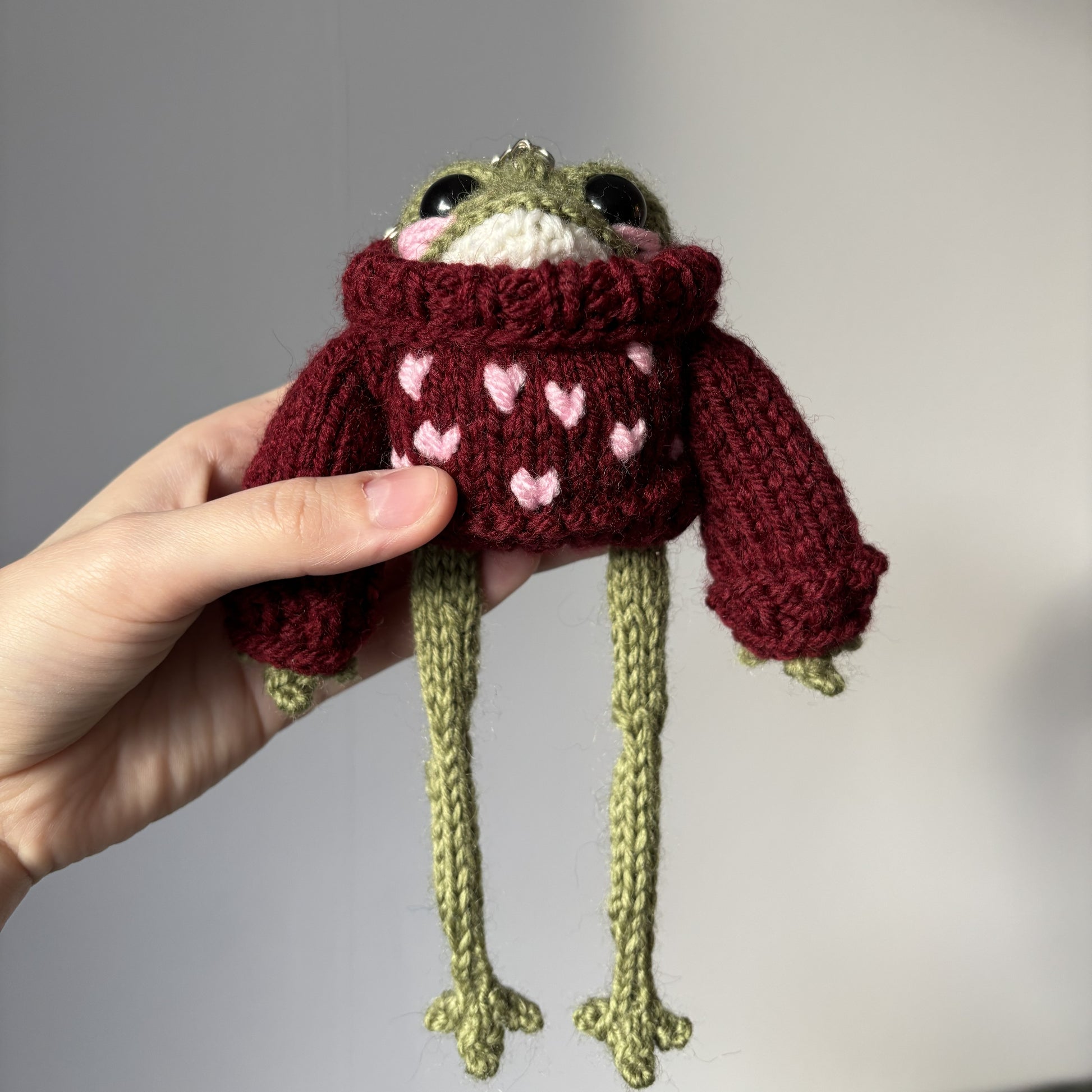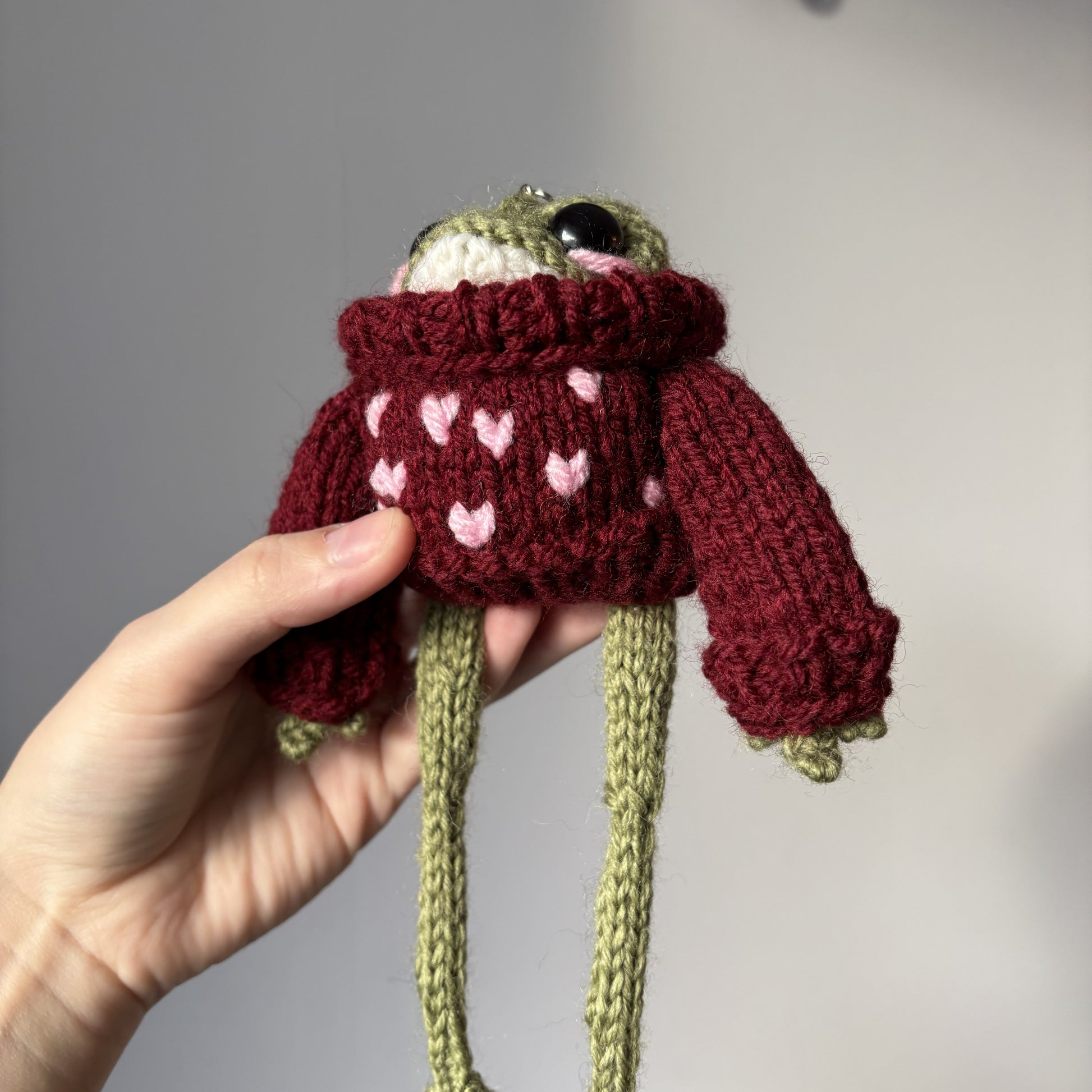 Breloczek Żabubu w bordowym swetrze z inicjałami