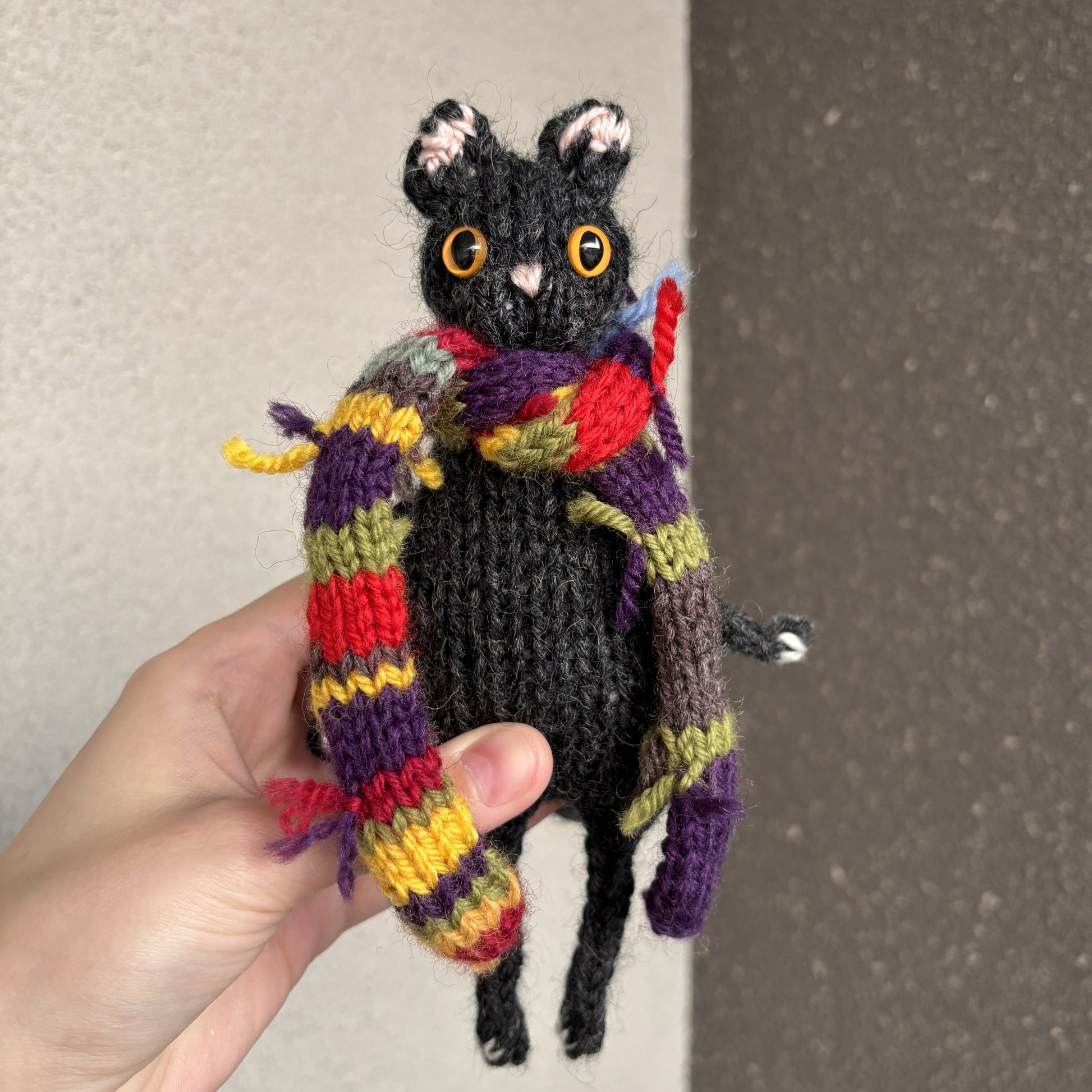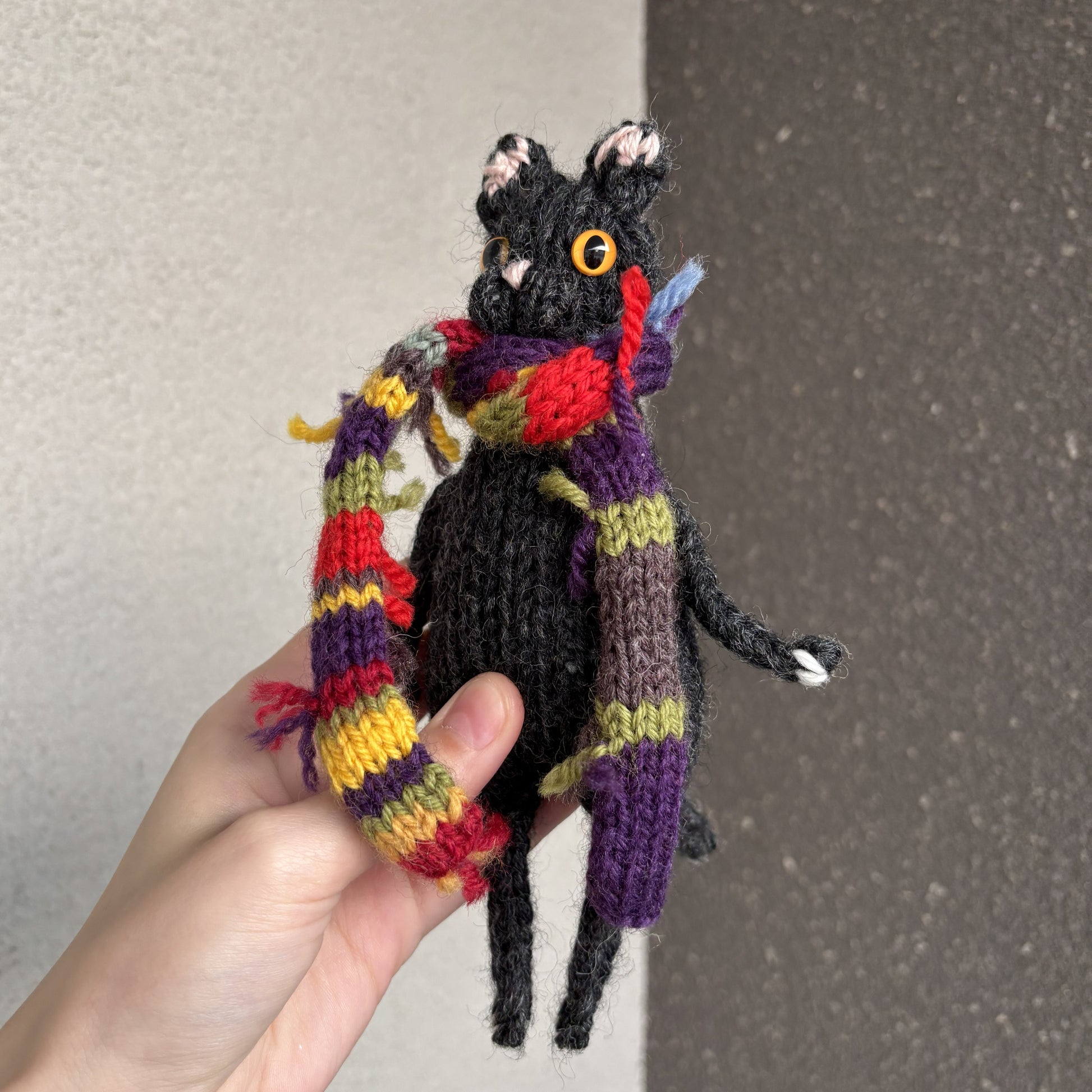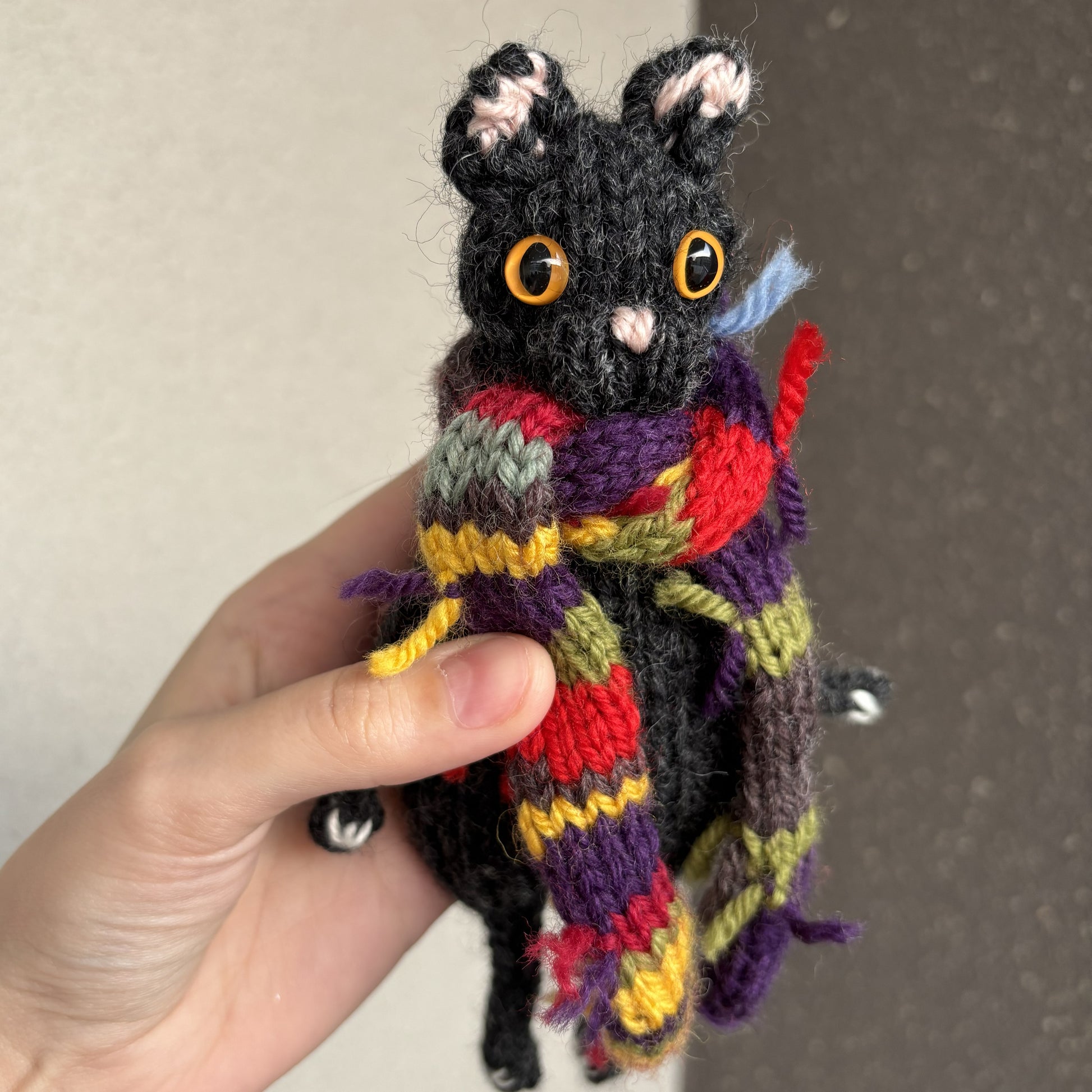 Maskotka wykonana ręcznie na drutach. Szalik zdejmowany.