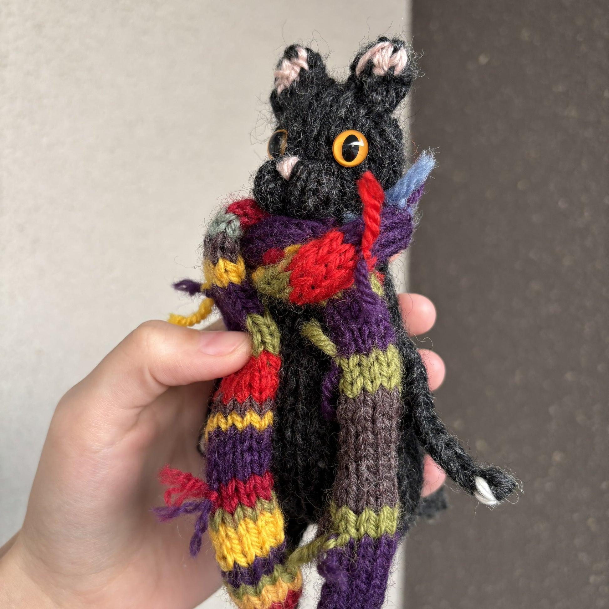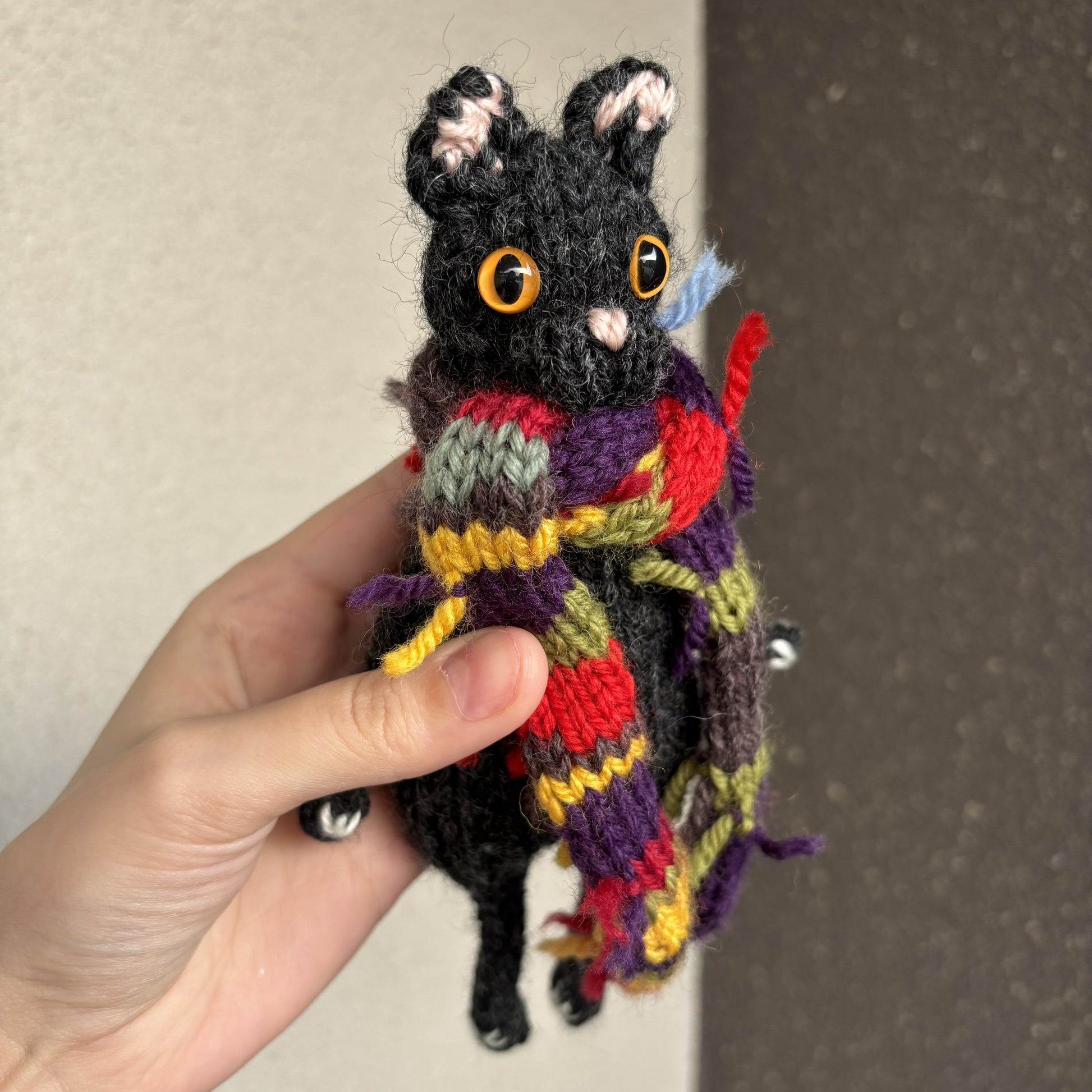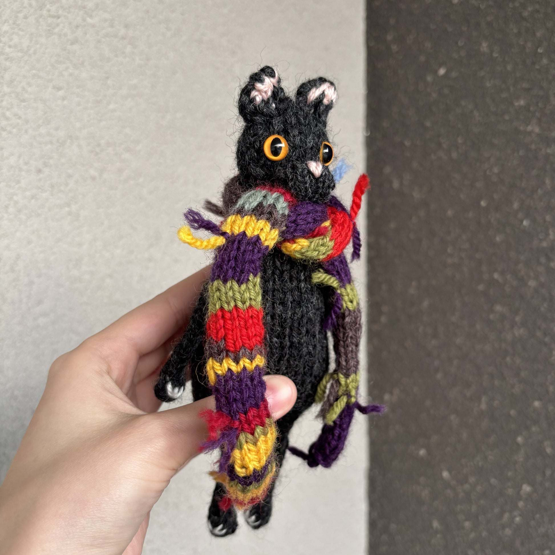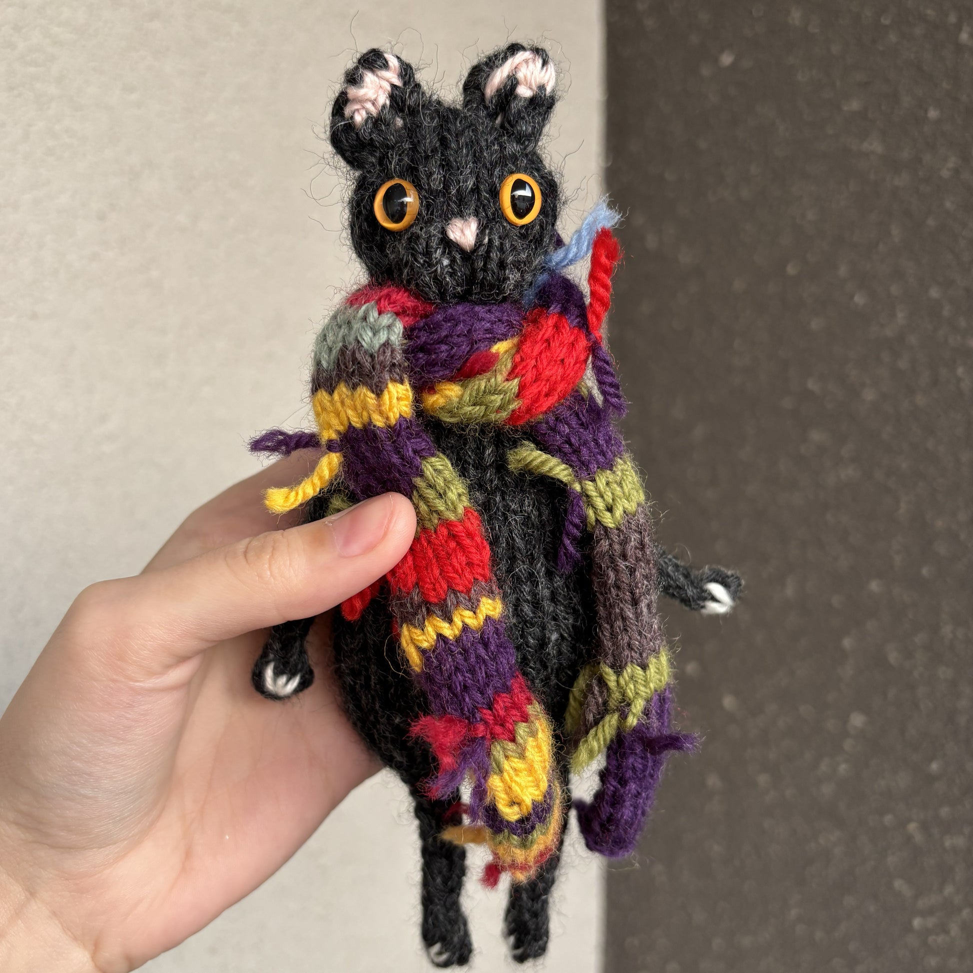 Maskotka wykonana ręcznie na drutach. Szalik zdejmowany.