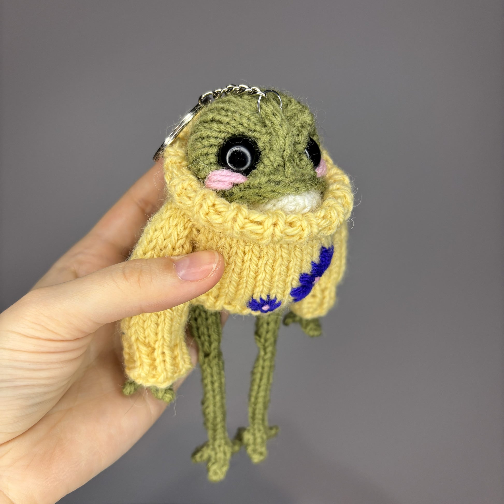 Żabka w sweterku z kwiatami (z breloczkiem)
