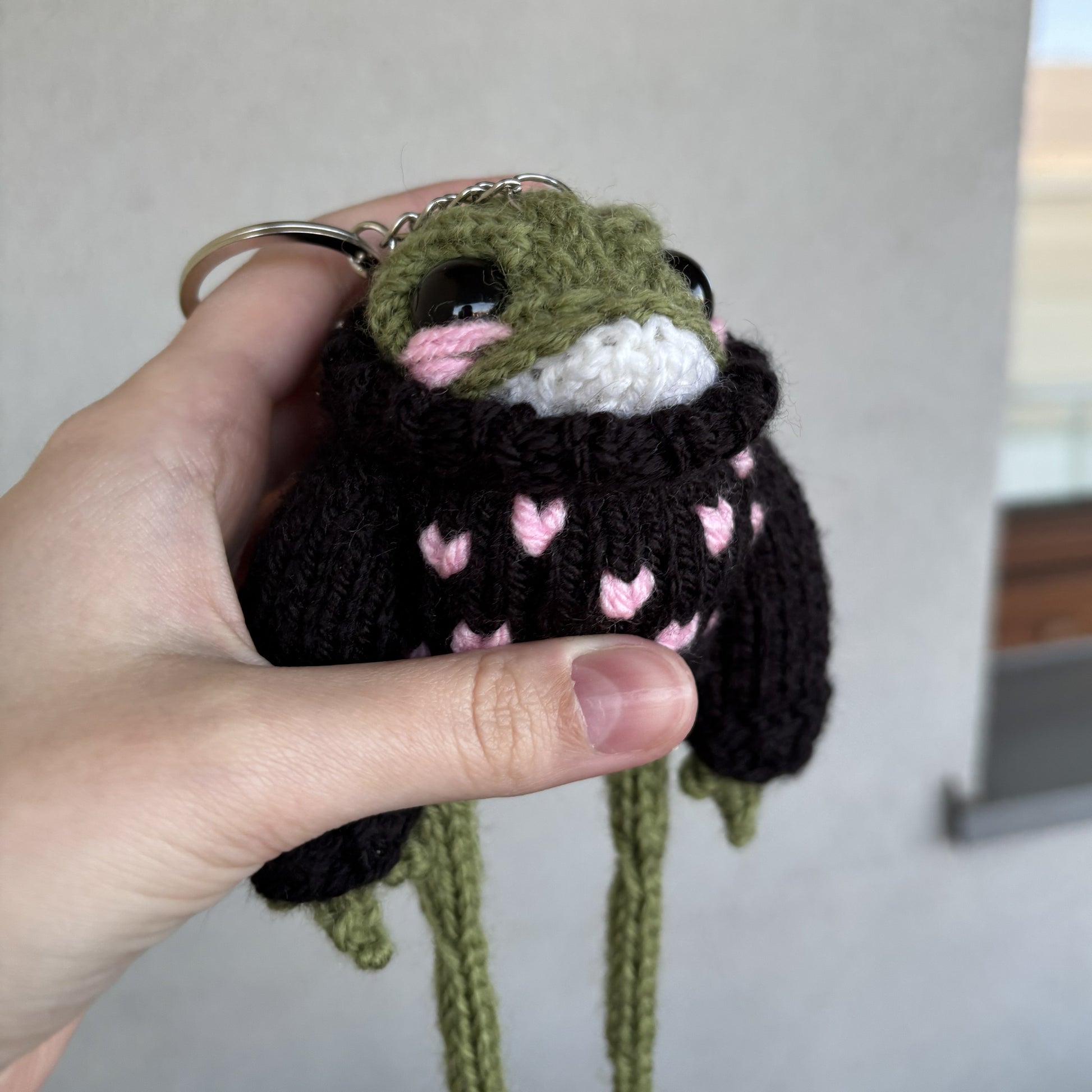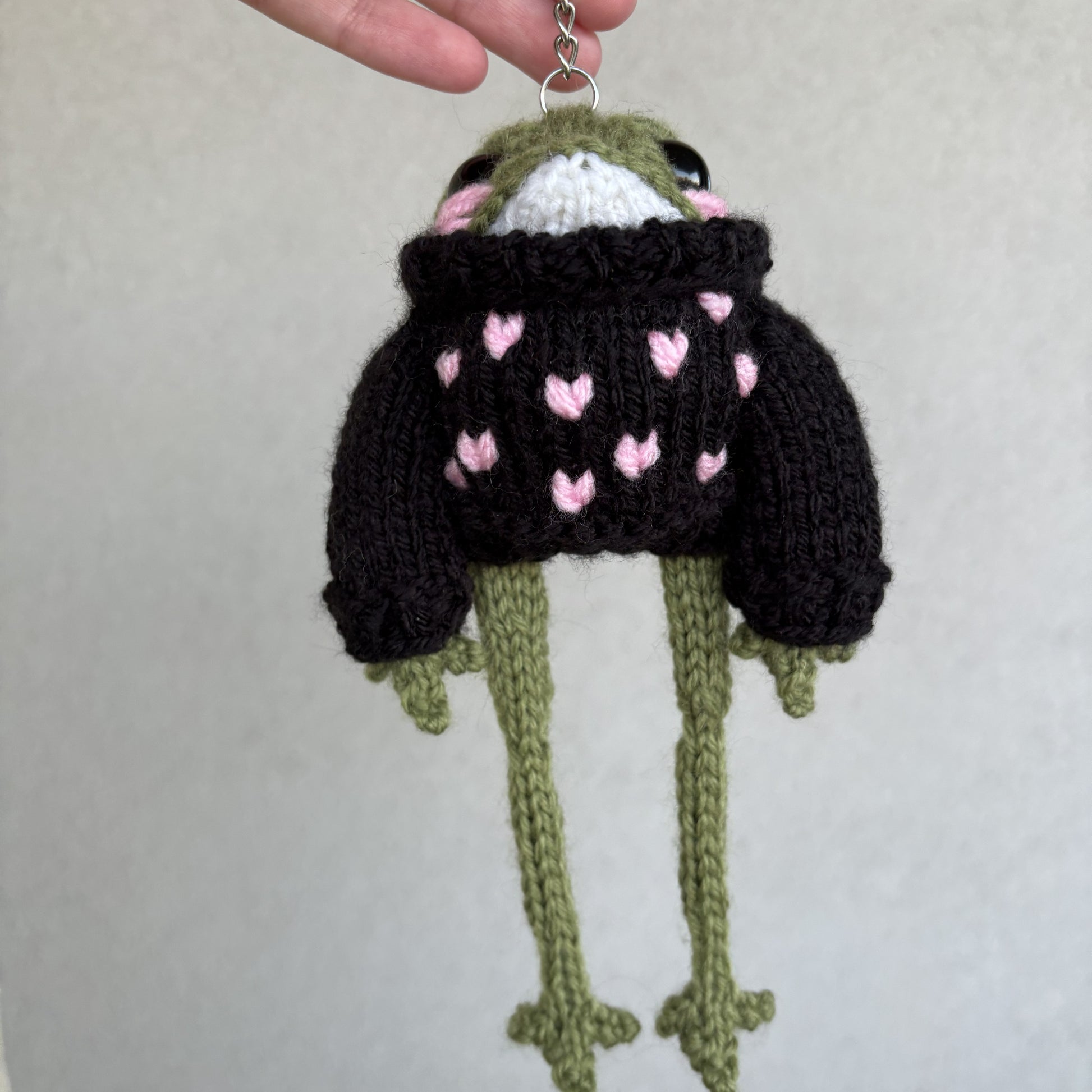 Maskotka wykonana ręcznie na drutach. Ręce i nogi można ustawić w dowolny sposób (w środku drut aluminiowy). Sweter zdejmowany.